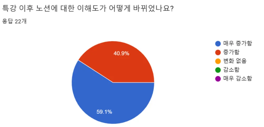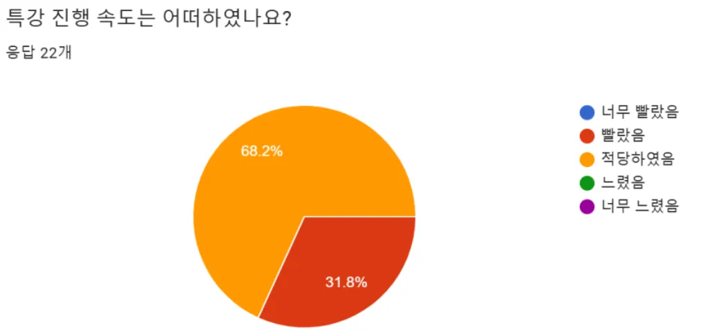 12월 6일 특강은 대다수의 참가자분들께서 만족도조사에 참여해 주셨다.