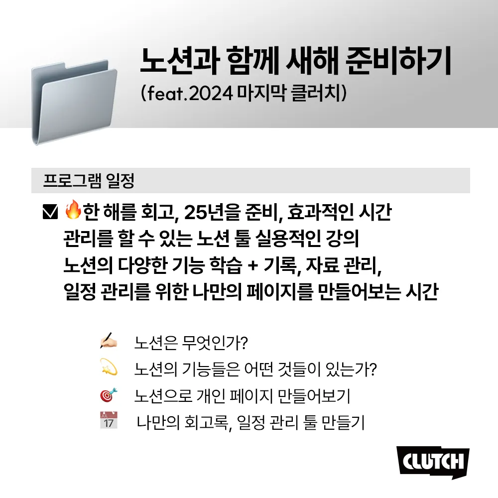 CLUTCH의 2024년 마지막 프로그램 강사로 나를 초청해주신 것이다.