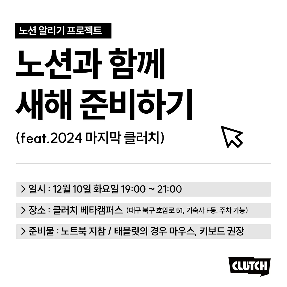 12월 10일 노션특강은 대구창조경제혁신센터 CLUTCH에서 진행되었다.