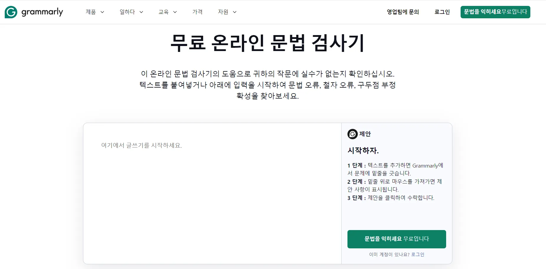 Grammarly는 영어 문법 교정기입니다. 실수하기 쉬운 관사의 사용이나 문장구조가 매끄럽고 맞는지 등을 교정해준답니다.
