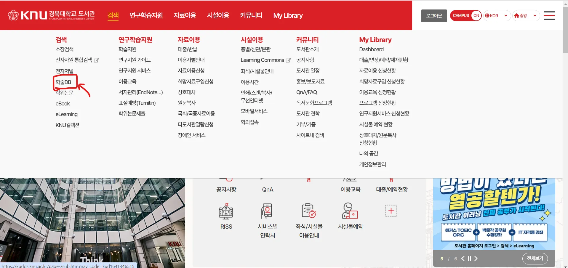 넘나 친절하게도, 경북대학교 도서관에서 이용 메뉴얼을 상세히 설명해주셨어요!