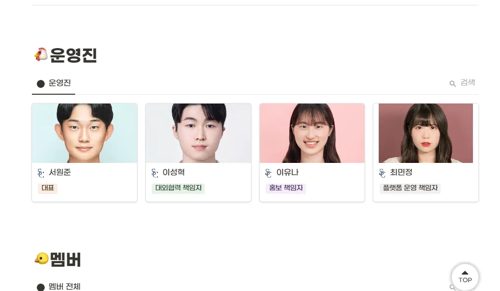 또한, 멤버페이지를 통해 각자의 관심사와 진로 등을 공유할 수 있으며, 이에 따라 서로 커넥션을 만들어갈 수 있습니다.