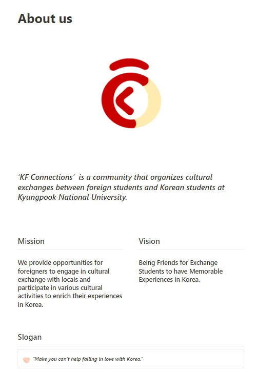아직 부족함을 느낀 저는 역량을 키우기 위해, 그리고 하나의 커뮤니티 ‘Social Connection’을 집중적으로 발전시키기 위해 KFConnections 커뮤니티 활동을 종료하였습니다.
