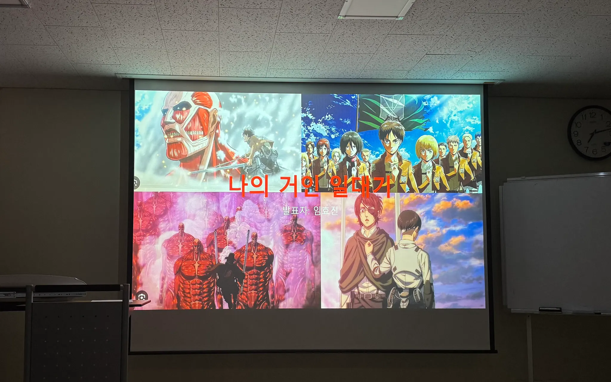 첫번째 발표자였던 효진이는 ‘진격의 거인’으로 발표를 했는데요,