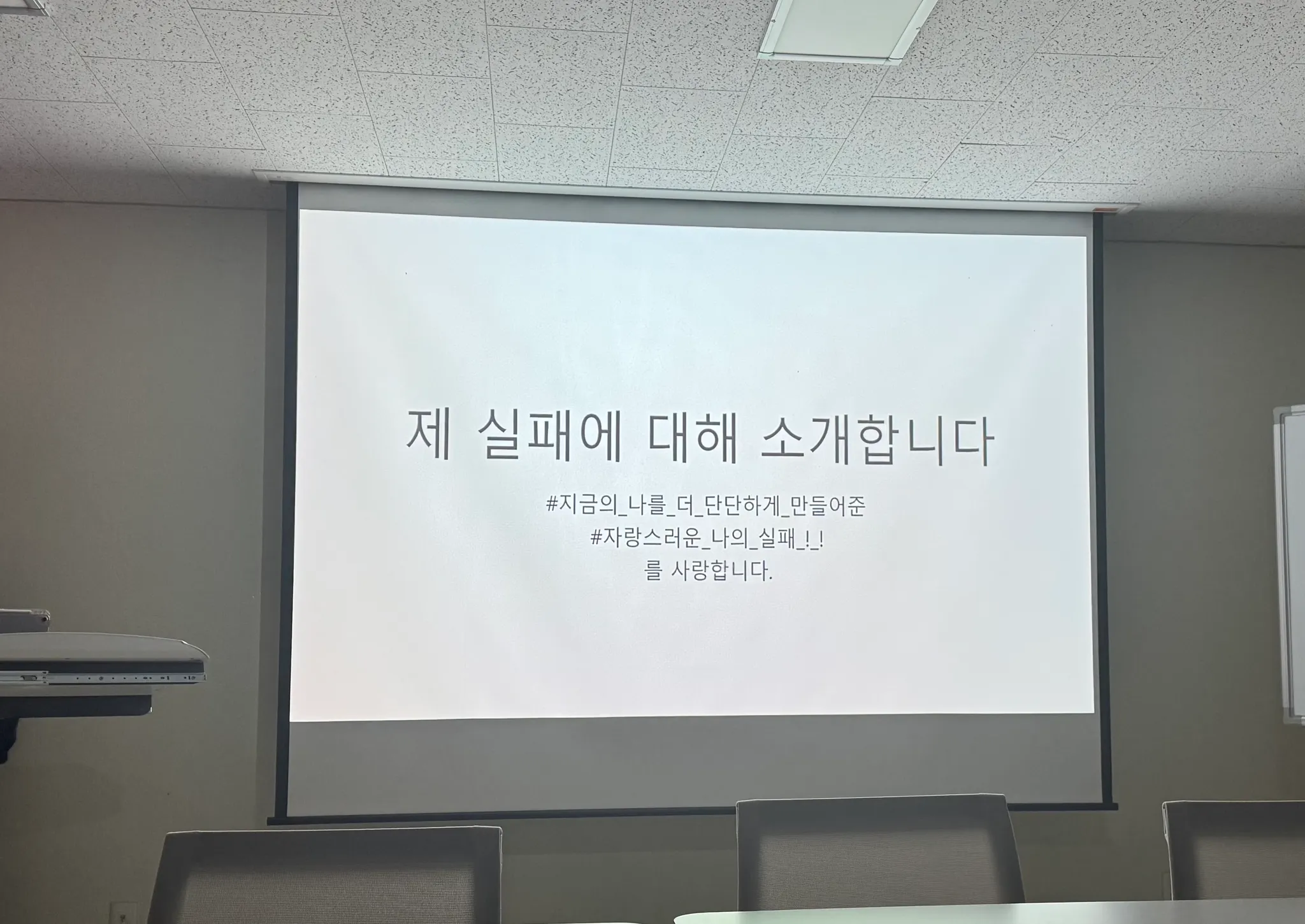 서현 선배님의 재수강에 관련된 실패 경험이 첫 번째 발표로 진행되었습니다!